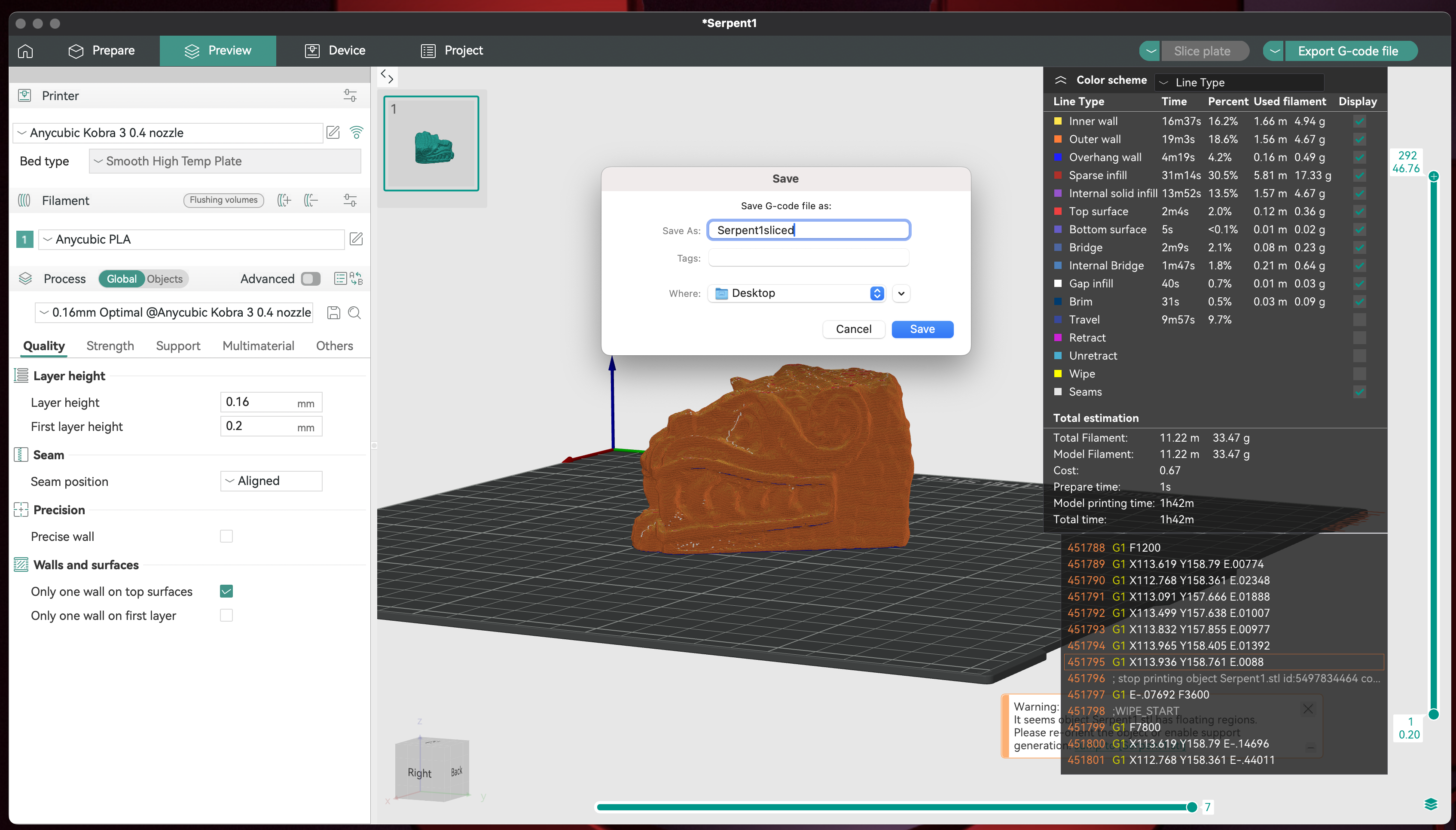 Click ‘Slice plate’ at the top right corner of the screen. After the slicing is complete, it should look like the screenshot below.